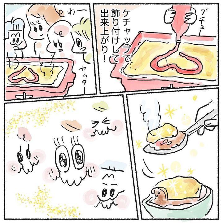 最後のケチャップ仕上げで、また盛り上がるんですよね。