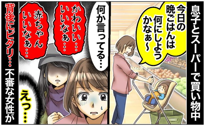 息子とスーパー「かわいい…いいなぁ…いいなぁ…」ボソボソつぶやく女性。背筋が凍る…恐怖体験とは?