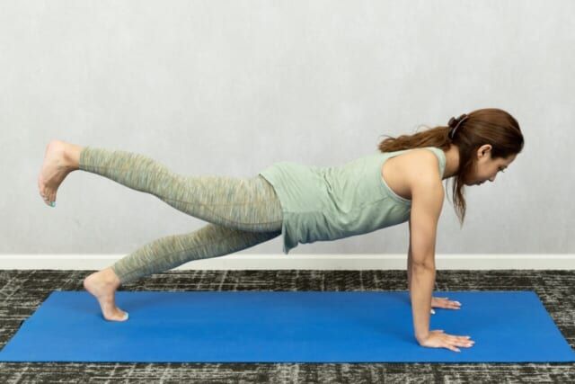 運動不足が続いていると、筋肉量が減って、代謝の低下とともに贅肉が付きやすくなってしまうもの。そこで、痩せやすく細見えする体をキープするべく習慣に採り入れたいのが、ピラティスの簡単エクササイズ【プランク→ウィズ・レッグ】です。腹筋と体幹を強化するプランクに脚を上げる動きをプラスするエクササイズで、理想のペタンコお腹&美脚へ導きます。