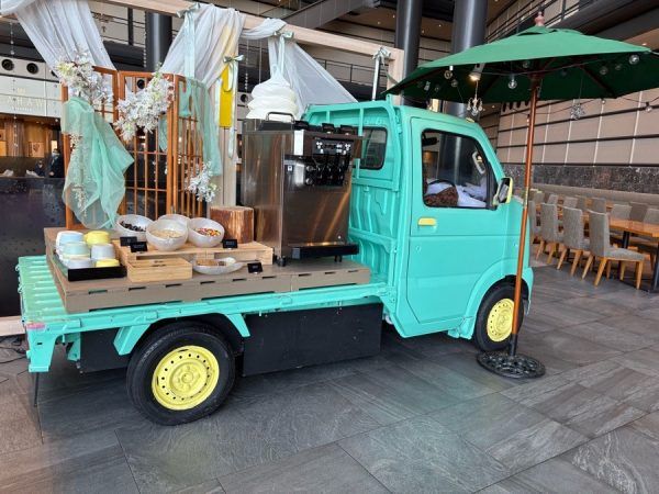 ソフトクリームもあります。ペパーミントカラーの軽トラックが可愛い♪