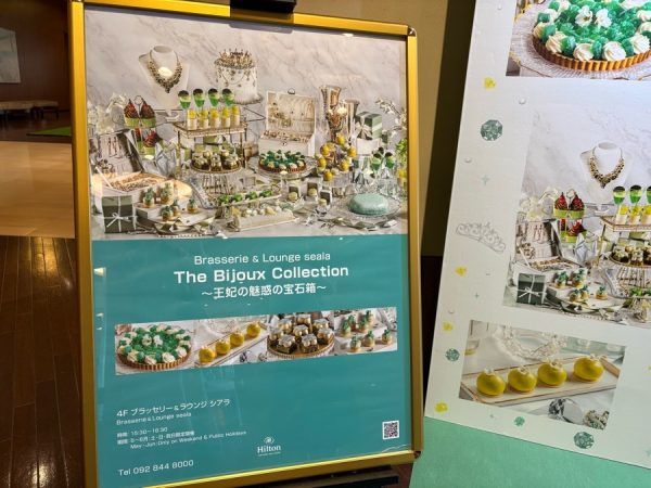 こんにちはリビングふくおか・北九州Web地域特派員のハートマザーです。 今回は、昨年12月のクリスマススイーツビュッフェに引き続き、ヒルトン福岡シーホーク 4F ブラッセリー&ラウンジシアラで2025年5月3日(土・祝)から、数々の王妃を魅了したエメラルドに着想を得たスイーツビュッフェ「The Bijoux Collection~王妃の魅惑の宝石箱~」のメディアイベントに参加させていただきましたので、ご紹介します。