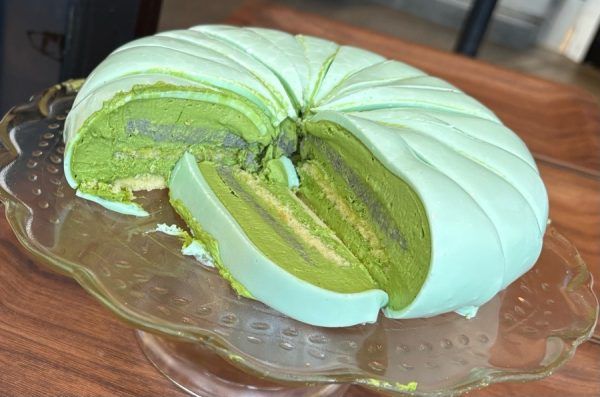 とっても柔らかいミントグリーンのチョコレートムースに包み込まれた抹茶と黒胡麻の味がとてもマッチしています。柔らかい生地で、甘過ぎず口溶けなめらかでした。