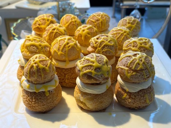 更には、「ヒルトンカレー」「油林鶏」「点心」「アメリカンドッグ」「ペンネ アマトリチャーナ」「明太子入り平飼い卵のサンドウィッチ」「ポテトサラダ」「カレー風味のマカロニサラダ」といったセイボリー(軽食)も準備されていて、甘い物の間にちょこちょこ食べるのもお勧めです。