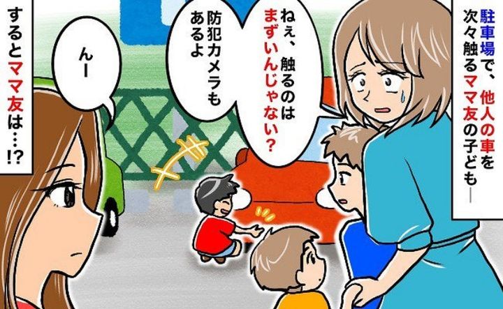 私は、「ねえ、他の人の車を触るのは結構まずいんじゃない? カメラとかあるし」とママ友にやんわりと注意しました。するとママ友は、「でもまあ、子どものすることだしね~。数字の勉強にもなるしいいかな~って」と言いながら、一向に息子を止めようとしません。