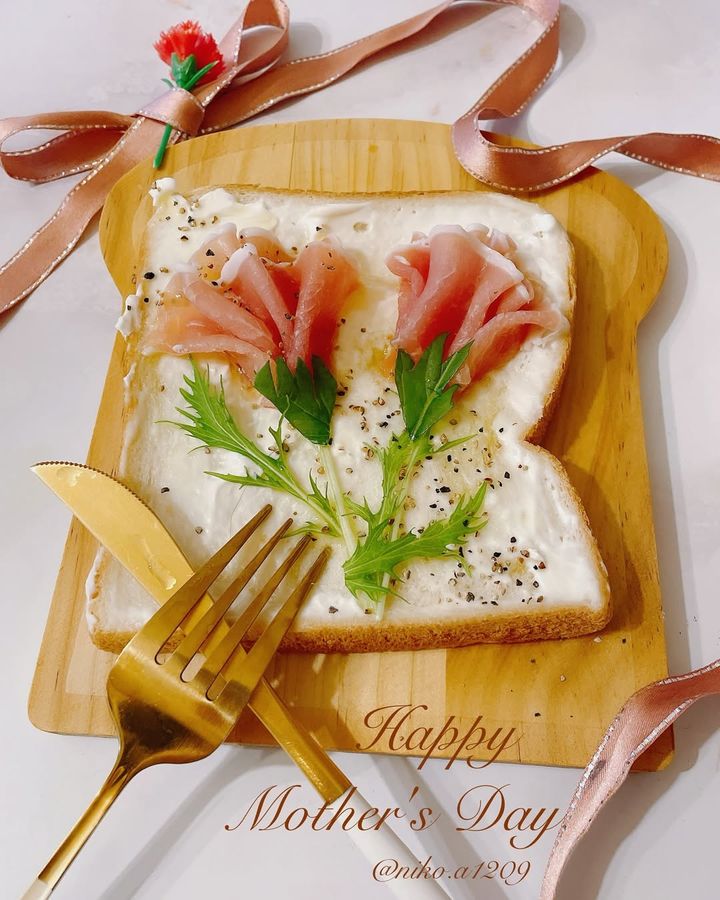 母の日の定番プレゼント、カーネーションをモチーフにしたオープントースト。