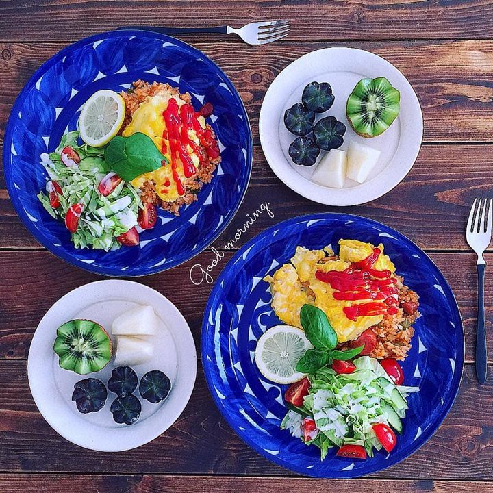 イエローとブルーのコントラストが卵料理を際立たせてくれて、手軽にカフェ風になりますよ♪