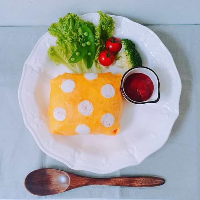 今やインスタでもよく見かけるようになった「水玉オムライス」。一見難しそうな見た目ですが、薄焼きした卵焼きを1度まな板の上にあげ、クッキー型などで丸にくり抜き、再度フライパンにのせたら、別にしていた卵白を流し込むだけなんです。