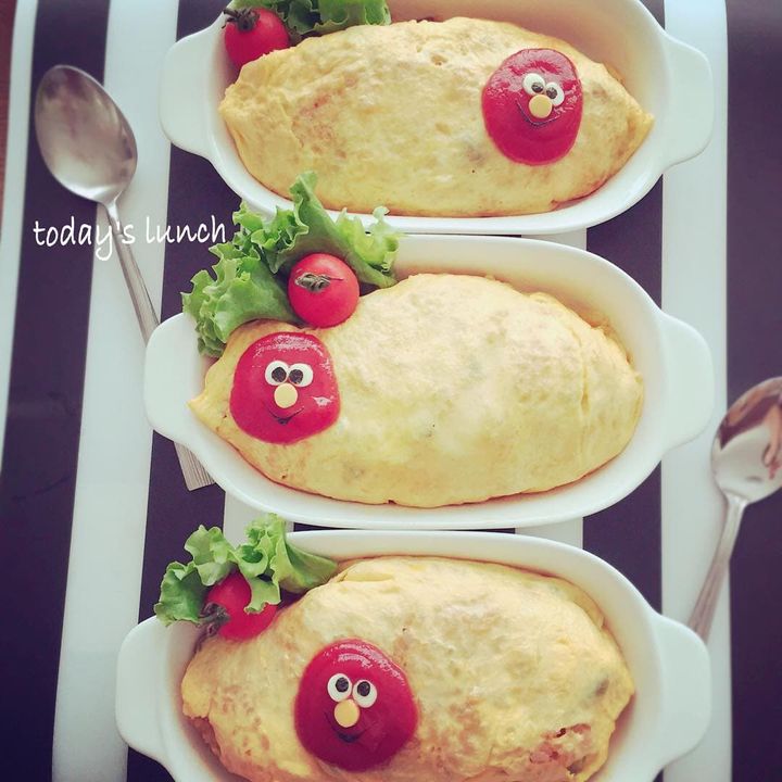 こちらはケチャップを生かして、エルモに。一つ一つ表情が違ってどれも可愛いので、取り合いになってしまいますね!