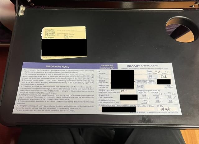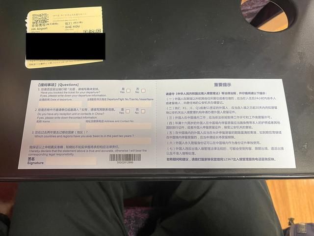 最終目的地が中国大陸の場合は、船内で入国カードを受け取って記入しておきましょう。フェリーの便名を書く欄があるので、フェリーのチケットは到着までなくさないように気をつけてください。