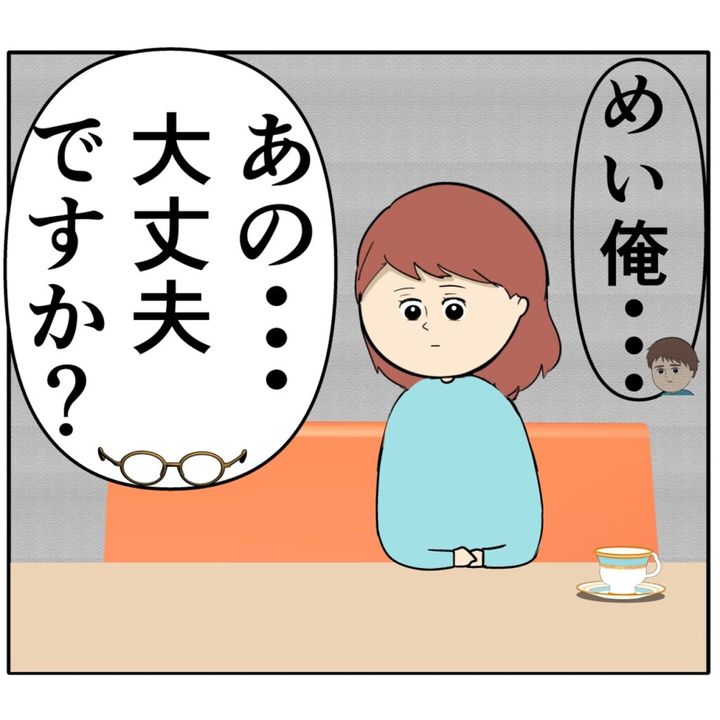 ろみ緒さんと離婚について話し合った日のことを思い返しボーッとしていためいさんに、「あの・・大丈夫ですか?」とめが根さんが心配そうに声をかけました。