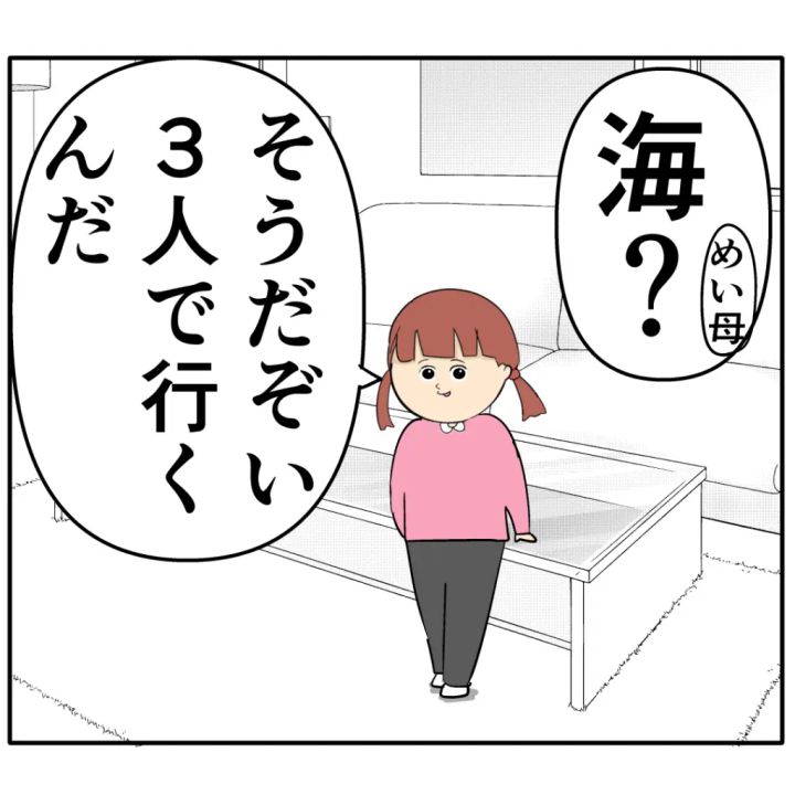 ろみ緒さんとめいさんが自宅で離婚について話し合いをしている頃、めいさんの実家に預けられていた娘のあかりちゃんは「3人で海に行くんだ」とおばあちゃんに話していました。