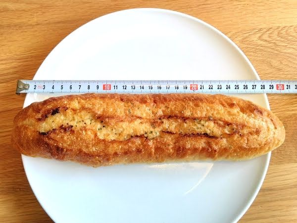 「ガーリックフランス(フィセル オ ライユ)」は、持ち帰る時にエコバッグからはみ出すほどの大きさ!家に帰って長さを測ってみると…