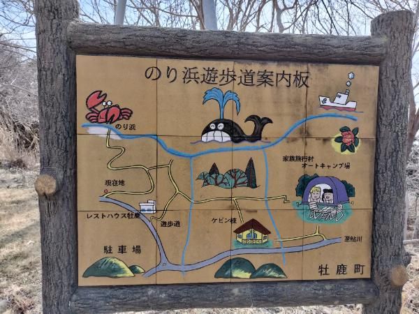ネットで見つけた「のり浜遊歩道」が気になって、帰りに立ち寄ってみることに。 車で2分ほど走ると、こんな看板を見つけました。