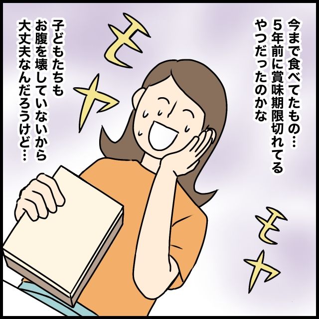 「今まで食べてたもの・・5年前に賞味期限切れてるやつだったのかな・・。子どもたちもお腹を壊していないから大丈夫なんだろうけど・・」と思いながらもモヤモヤが止まらない!