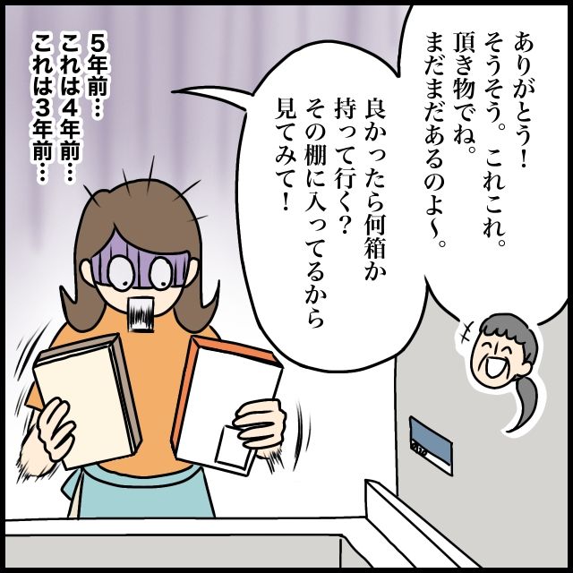 自分で取った箱を見て驚く私に、「ありがとう!そうそう。これこれ。いただき物でね。まだまだあるのよ~。よかったら何箱か持っていく?その棚に入ってるから見てみて!」と笑顔でそう言う義母。