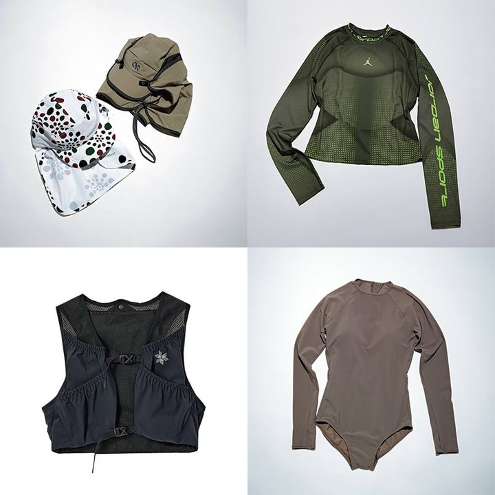 右:UPF40のUVケア素材。吸汗性と速乾性に優れ、ドライな状態をロングキープ。