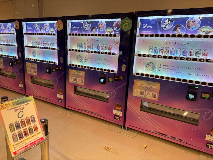 ディズニーキャラクターのラベル付きウーロン茶の自販機も人気でした!