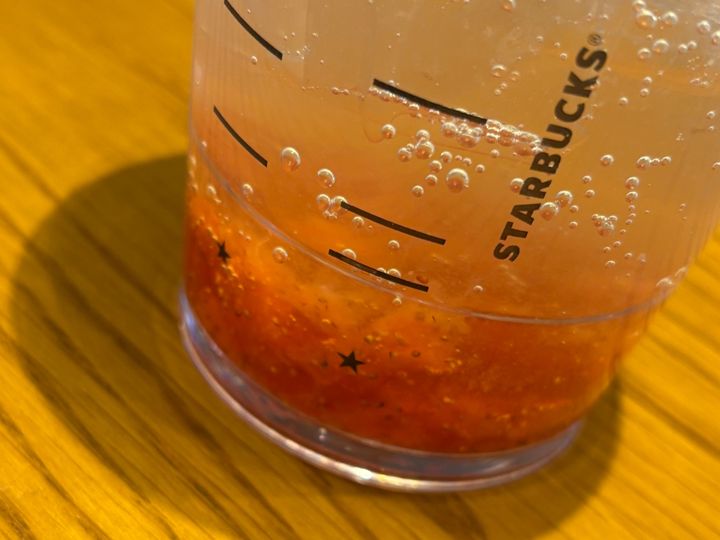 スターバックスが今回のために開発した、レモン・ライム・グレープフルーツなどのシトラスに、梨・ハーブなど10種類以上の香りを絶妙にブレンドしたシロップが入っています。