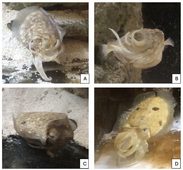 これらのサインを撮影した映像を「上下正しい向き」または「逆さま」にして別のコウイカに見せたところ、コウイカは正しい向きの映像に対してより頻繁に反応し、しばしば同じジェスチャーを返してきました。