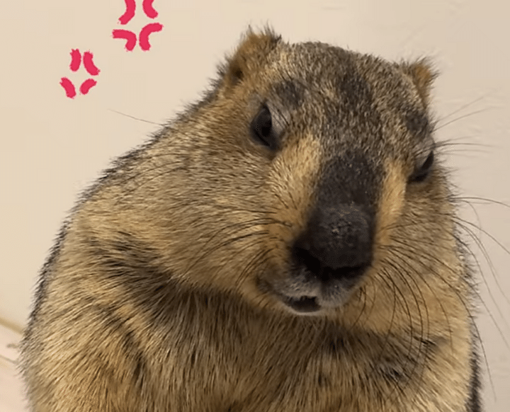モグモグ中に邪魔された! 怒っても可愛いマーモットさん