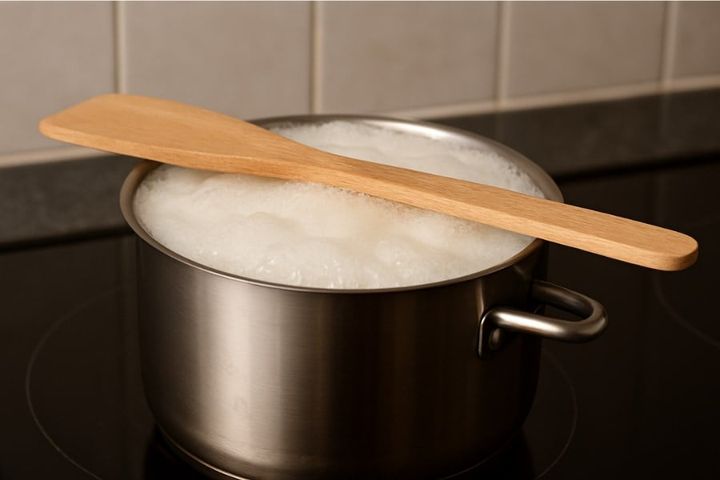 木べらを鍋の上に置くと、吹きこぼれを一定時間遅らせることができます。