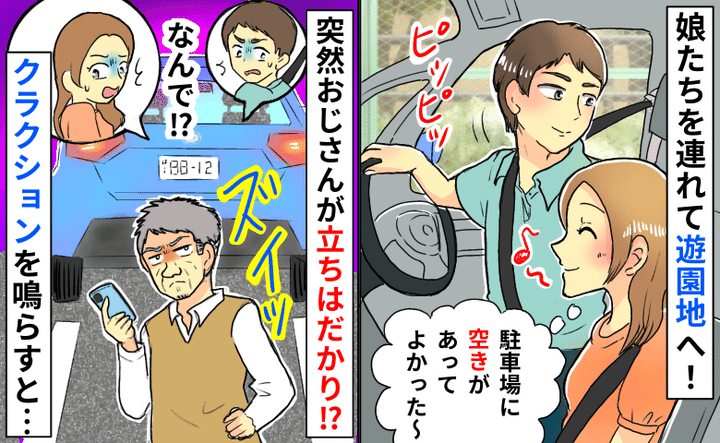 遊園地の駐車場でバック中に男性が「どいてくれない…なんで!?」クラクションを鳴らすと近づいてきて