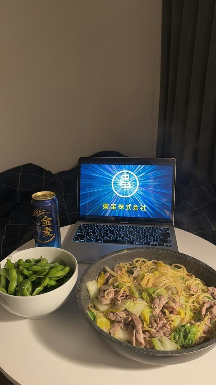 お写真を見た瞬間に、すぐにでも同じようにやりたくなってしまいました…。食事にビールと枝豆。まさに至福の時間です。映画を見ながらこういった食事セットは、自宅しか味わえません…。冒頭の会社クレジットが表示されると、「今から始まるんだ」とわくわくしてきますよね。