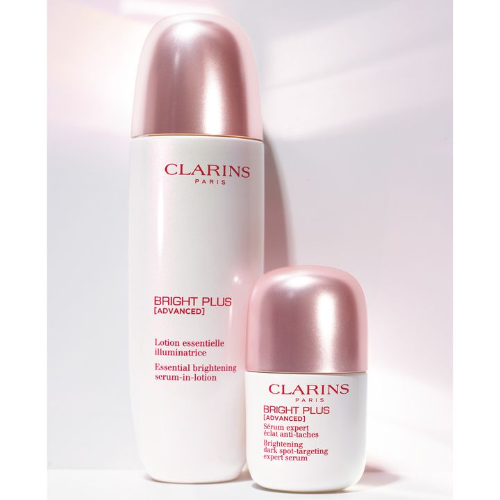 メラノサイトの細胞膜上に存在するタンパク質の集合体、カベオラがスキントーンの均一性に深くかかわっていることに着目。カべオラの量を130%増加させるテクノロジーを搭載し、シミや肌もやを撃退します。黄ぐすみにもアプローチするアセロラエキスも配合。左:セラム イン ローション150ml¥11,110 右:ブライトニング DST セラム30ml¥13,530[ともに医薬部外品](ともにクラランス)