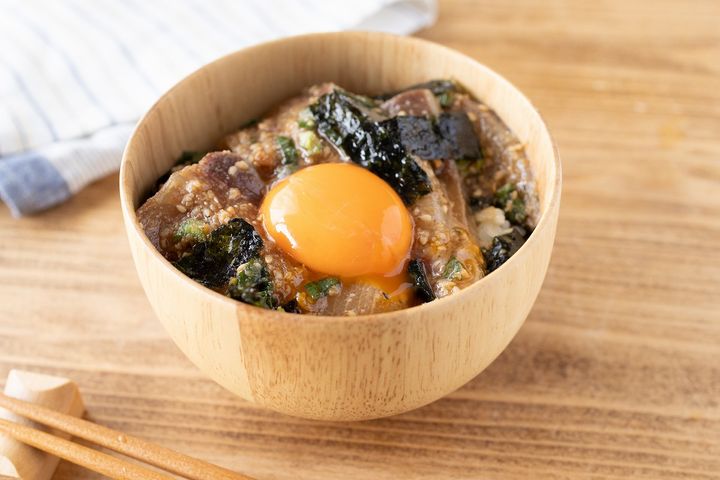 ごはんにのせて卵黄を落とせば、まさに罪の味です。