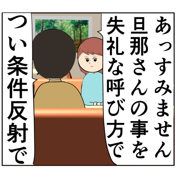 「あっすみません、旦那さんの事を失礼な呼び方で。つい条件反射で。」と、めが根さんはろみ緒さんのことを「ふわっと野郎」と呼んだことを慌てて謝りました。