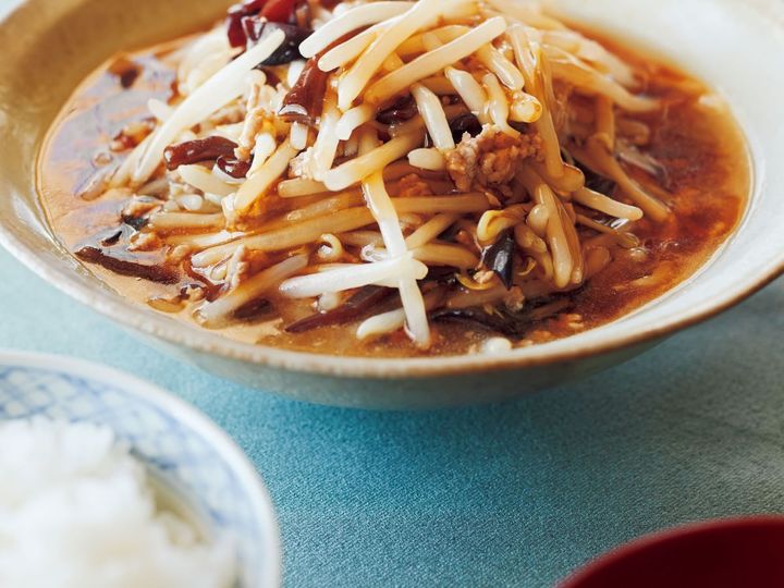 もやしは、炒める前に冷水にさらしてパリッとさせ、炒めるときも油をからめる程度で手早く作業すれば驚くほどシャキシャキに。あんのベースにしただし汁が、しみじみとやさしい、上品な味わいに仕上げます。しょうゆと塩だけの調味とは思えない奥深い風味を、ぜひ堪能して!