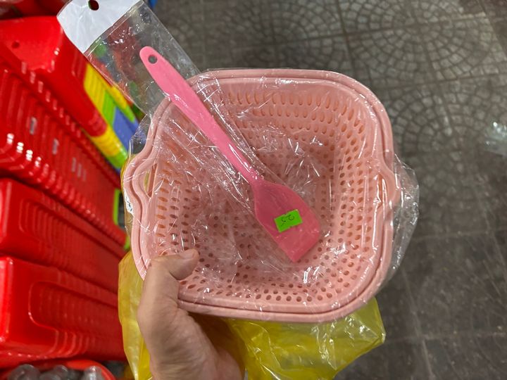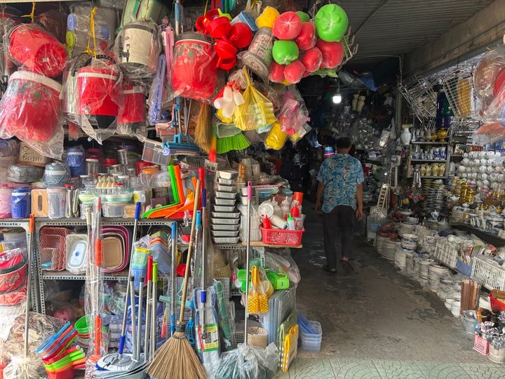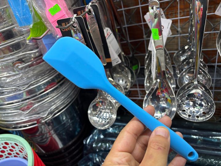 キッチン用品が並ぶエリアに到着。ベトナムの市場の特徴として、食品なら食品、服なら服というように、カテゴリーごとに店が連なっています。早速使いやすそうなゴムべらを発見。ベトナムのキッチン雑貨はカラフルなものが多くて、ビジュアルも魅力的なんですよね~。