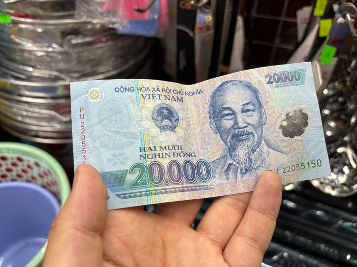 市場の商品は、値段が書いてあるものもありますが、たいていは言い値。基本は現金払いです。すぐにお店の人が電卓で金額を示してきます。このゴムべらは25,000ドン(約150円)。さあ、ここからが交渉スタートです。