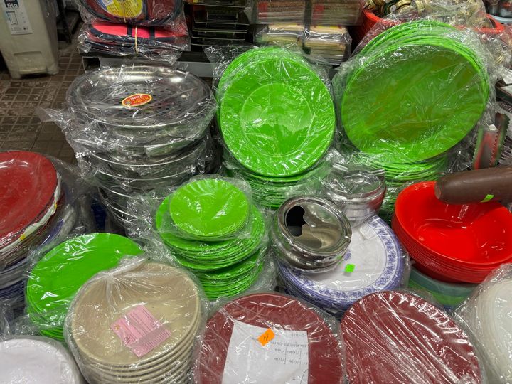 ドンバー市場は大きく、巨大迷路のよう。食品、服飾品、雑貨に工芸品まで、ありとあらゆるものが揃います。どの店も、これでもかと商品を並べて(重ねて?)いて、店員さんは在庫を把握しているのか?と思ってしまうほど圧巻のビジュアル。今日は使いやすいキッチン雑貨を探したいので、生活用品コーナーへ向かいます。
