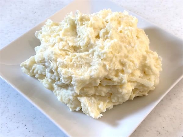 4. 2が熱いうちにクリームチーズを入れて混ぜ、マッシャーで潰します。