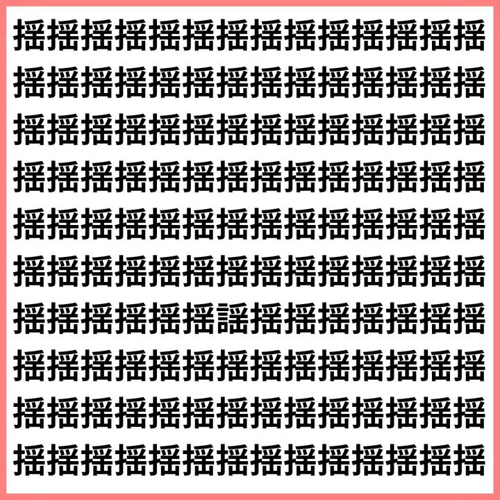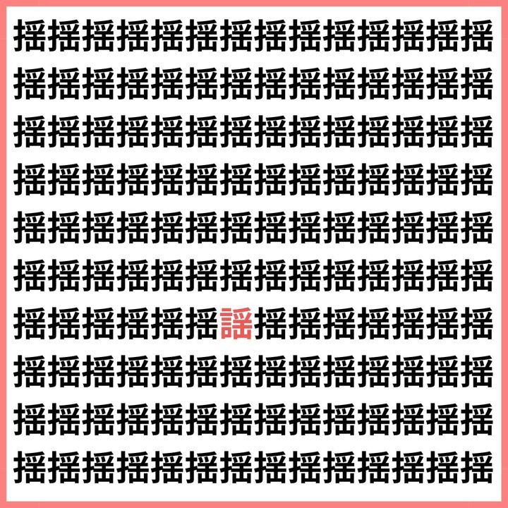 たくさんの「揺」の中に、1文字だけ違う漢字が混ざっています。