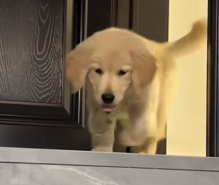 ウキウキ気分で玄関までやってきた子犬さん。