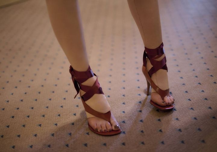 バレエコアで思いっきりロマンティックに。胸に巻いたトップス ※参考色¥209,000、ボディスーツ¥187,000、レギンス¥176,000、シューズ ※参考商品(全てフェラガモ/フェラガモ・ジャパン)