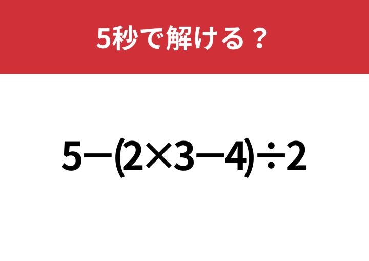 大人でも解けない人が多いかも!?「5−(2×3−4)÷2」5秒で解ける?