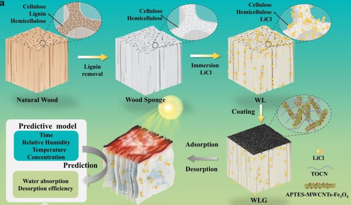 研究チームは、そこに水分を強力に吸着する塩化リチウムと、太陽光を熱に変換する酸化鉄ナノ粒子を組み合わせました。