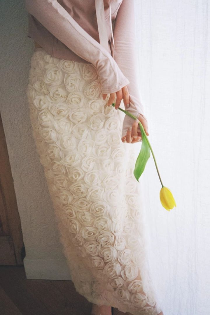 ふわふわと軽やかでいて甘い。そんな満開のお花を花束にしたようなスカートが私にときめきをプレゼントしてくれる。