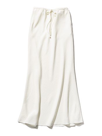 そもそもシャープなIラインシルエットは、マーメイドのように微々たる起伏があると着やすく・動きやすく・合わせやすく。さらに落ち感のある素材なら、脚の輪郭を上手にカムフラージュ。