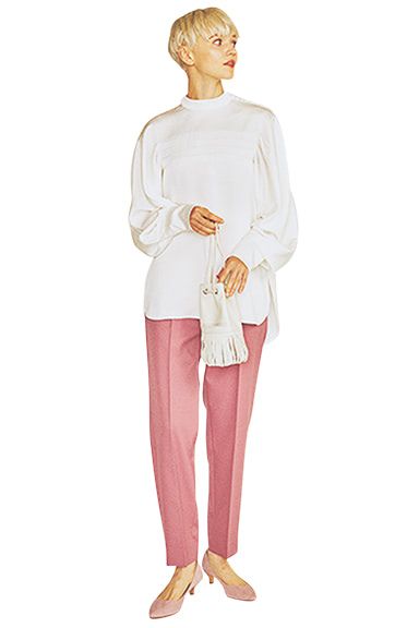 先細のトゥ+甲浅のカットで、色の甘さにキレをプラスすれば、ローヒールでも脚を短く見せず、もたついて見えない。華やかでありながら、洗練された印象をかなえる「可愛い色」のパンプスをご紹介。