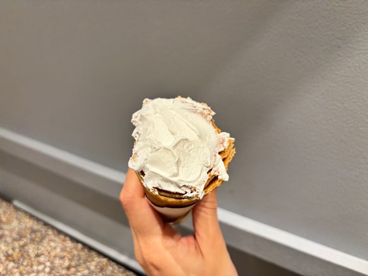 スプーンでつつこうとすると、アイスが硬めのため、クレープが崩れそうになります。