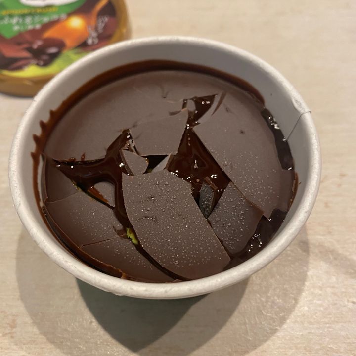 こちら天面がチョコレートで覆われていて、スプーンでパリパリ割るのが楽しいアイスクリームです🍨🥄
