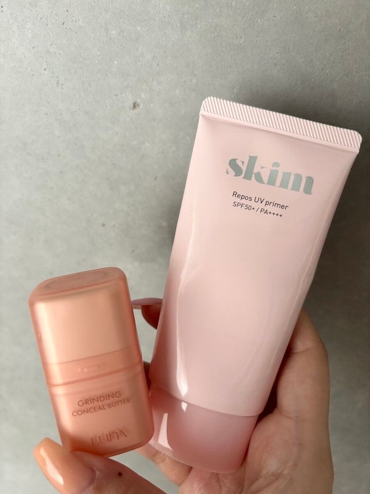 左から:skim Repos UV primer、LUNA グラインディングコンシールバター(共に私物)