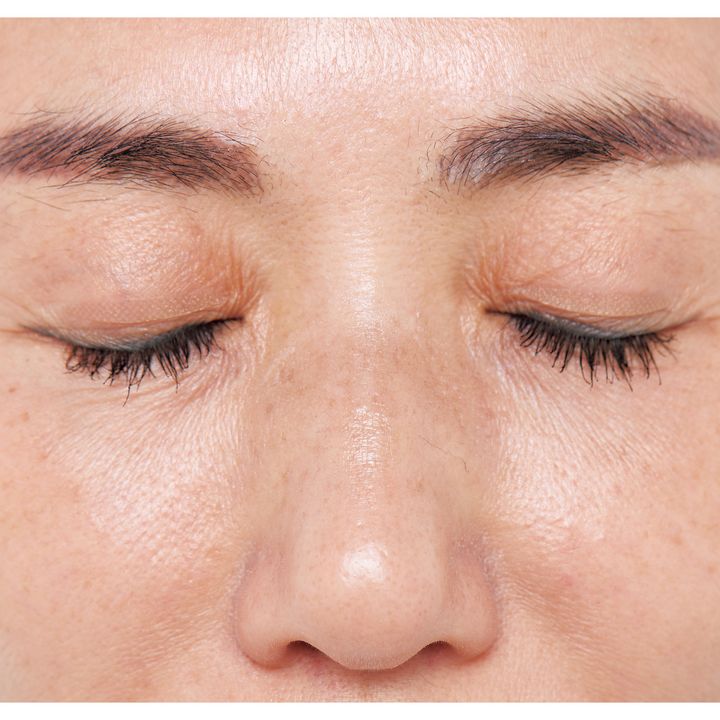 鼻の上の眼鏡ジミ、まぶたのくすみ、目周りの小ジワもすっきり改善。「軽いテクスチャーなのに肌をしっとり保湿してくれて、2週間で肌にハリが出てシミやくすみにも効果が。あらゆるエイジングケアができて嬉しいです」