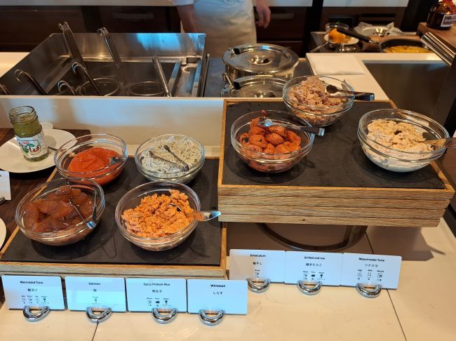 鮭や明太子、しらす、梅干しなど白いごはんのお供もたくさん用意されていました。大阪城に近い立地ということで海外からのお客さまも多い同ホテル。お茶漬けは外国人にも好評なのだそうです。