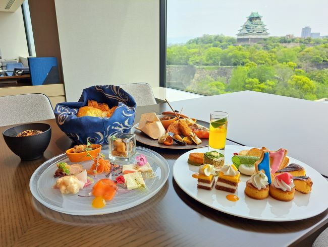 大阪城の新緑を一等地で眺めながらビュッフェメニューも楽しめる、とても贅沢なランチタイムになりました。