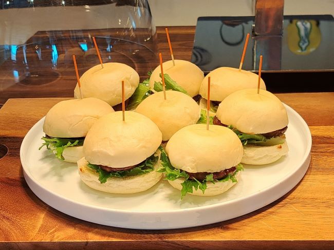 ビュッフェ台には季節の食材を使ったメニューが豊富に並びます。かわいらしい手のひらサイズの「ミニハンバーガー」は、ランチ限定メニュー。思わず取りたくなりますよね。気になったものからどんどんお皿に乗せていきますよ。